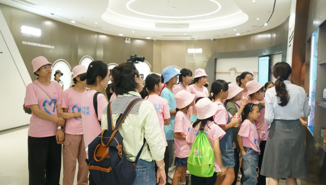 紧接着,孩子们来到了建党百年庆典红旗——070号红旗前。讲解员讲述了币游国际药业集团与庆典红旗的深厚渊源。孩子们听得津津有味,眼中闪烁着对党和国家的热爱与敬仰。